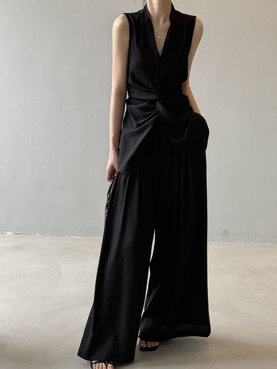 Sleeveless Shirt & Wide-Leg Trousers Set