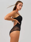 Who said bodysuits can't be sexy and comfortable? The Audrey bodysuit combines both in a flirty and feminine way. With semi-transparent mesh on the sides, push-up cups and a brief with a delicate floral detail, this bodysuit is perfect for showing off your curves for a sexy and seductive look.