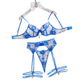 Elevate your allure with the Diana Embroidered Lace Lingerie Set. This exquisite three-piece set features delicate floral embroidery, underwired cups for added support, and adjustable garter straps for a custom fit. The intricate lace and bold design make it perfect for unforgettable moments of elegance and seduction.
