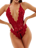 Dare to seduce with the Liaza Lace Bodysuit in passionate red. Featuring floral lace, scalloped edges, and an open crotch design, this one-piece turns every moment into temptation.